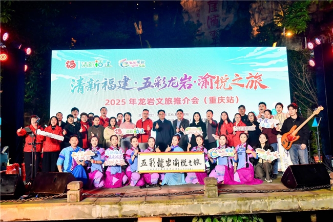 闽山闽水物华新,12月 1日,为深化渝闽两省文旅交流,进一步拓展重庆地区重点客源市场,探索跨区域旅游发展路径,推动文旅资源融合。由龙岩市文化和旅游局主办的“清新福建·五彩龙岩·渝悦之旅 ”2025年龙岩文旅推介会在重庆洪崖洞盛大启幕。龙岩市文化和旅游局领导、重庆市渝中区文化和旅游发展委员会领导、重庆市福建龙岩商会会长以及龙岩各县(市、区)文旅业务负责人、重点文旅企业代表、旅行商代表及媒体记者、旅游达人等出席活动现场。