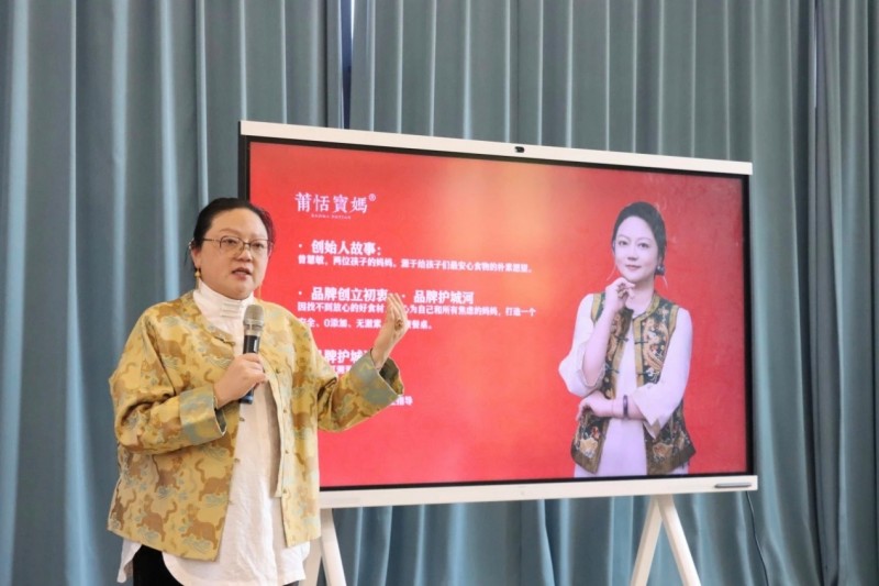 莆恬宝妈创始人曾慧敏以莆仙饮食文化为核心展开分享,用接地气的讲述带学子们读懂藏在米线、卤面与春卷里的千年饮食文脉,还特别介绍了可冲泡即食的营养米线,直观呈现非遗美食紧跟时代的创新巧思。