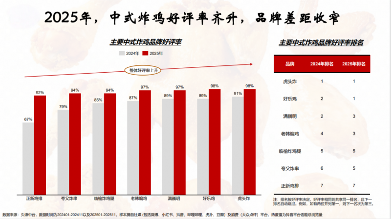 (久谦数据的中式炸鸡好评数据,显示越来越多年轻消费者偏爱中式炸鸡)